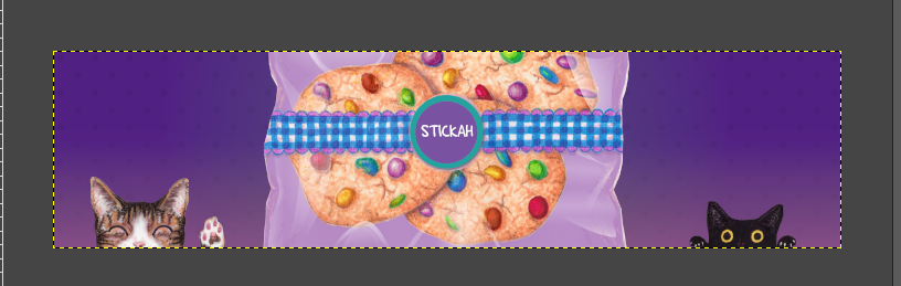 Why I decided these cookies should be in a clear cellophane bag, I do not know. Here is bag-in-progress, trying some colours and stuffs, and ‘STICKAH’ is of course temporary.